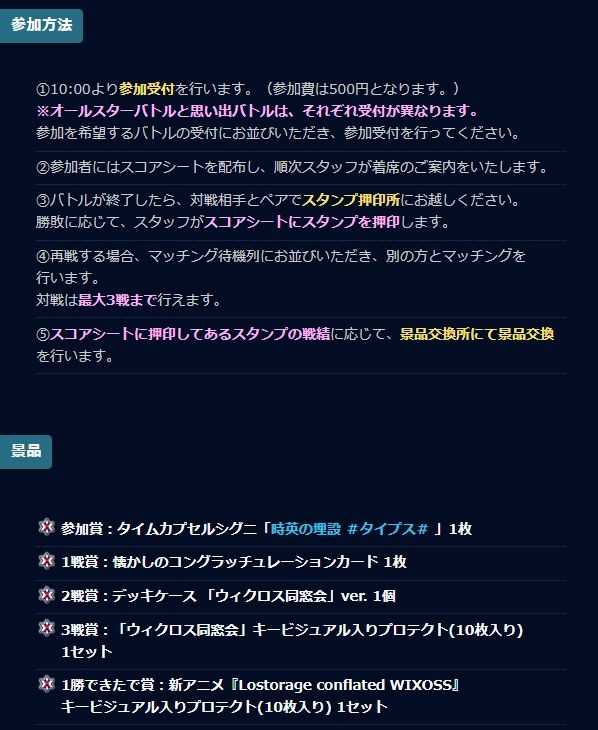 ●ウィクロス大同窓会オールスターバトルラッシュ&思い出バトルラッシュ