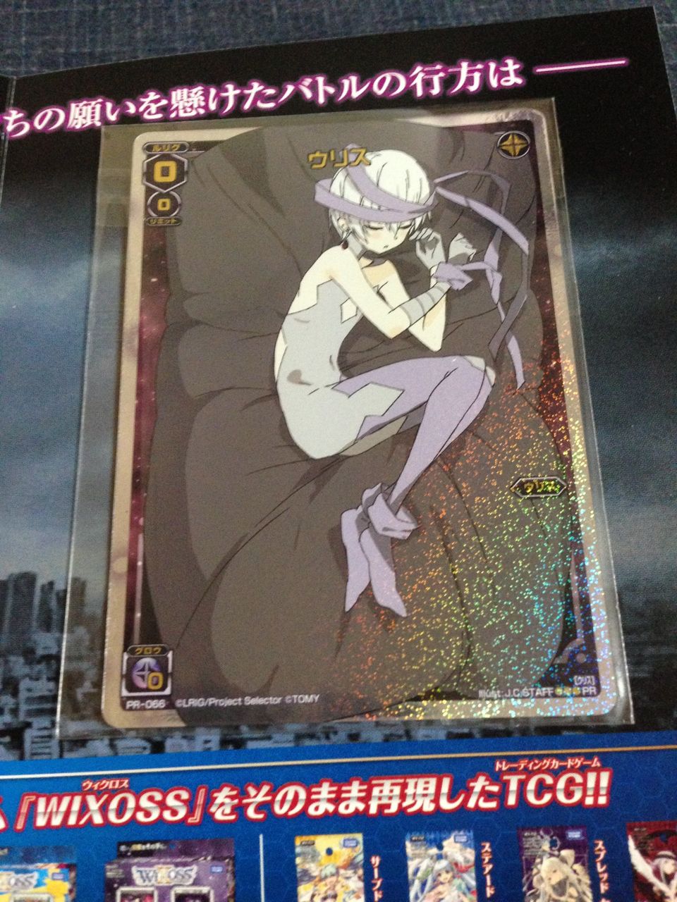 ルリくるキャンペーンにてルリグがやってきました(私的記事) 2014年11月03日 カテゴリ:ニエのカードレビュー Twitterでフォロワーさん達が当選しているのを見つつ、この3連休は家とポストを10往復くらいしましたが、今朝やっと届いておりました。 専用シートは結構豪華な作りとなっております。 私が当たったのは《ウリス》でした。加工がとても綺麗です。 このキャンペーンはアニメ終了時にやった方が、アニメ観てWIXOSS始めようと思った人も参加出来るので、良かったような気もしますね。アン、ミルルン、リメンバ、ウムルはまだなので第3弾に期待です! 私的な事ですが、エルドラで大会に参加して3止め緑ランサーに心を折られました。 3止め2止めは終始安定しているので、強いです。